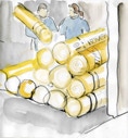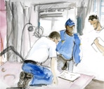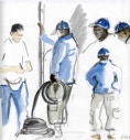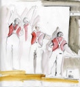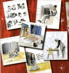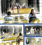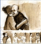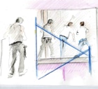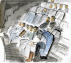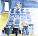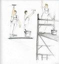 Reportages graphiques du chantier de reconstruction du cinéma le Comoedia et des répétitions de la pièce de théâtre: le Revizor