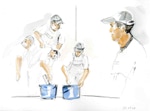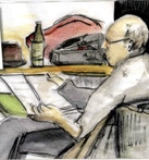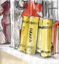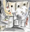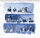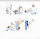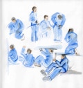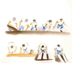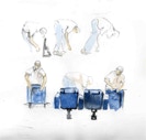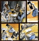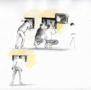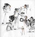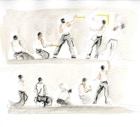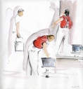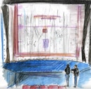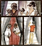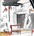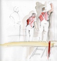 Reportages graphiques du chantier de reconstruction du cinéma le Comoedia et des répétitions de la pièce de théâtre: le Revizor